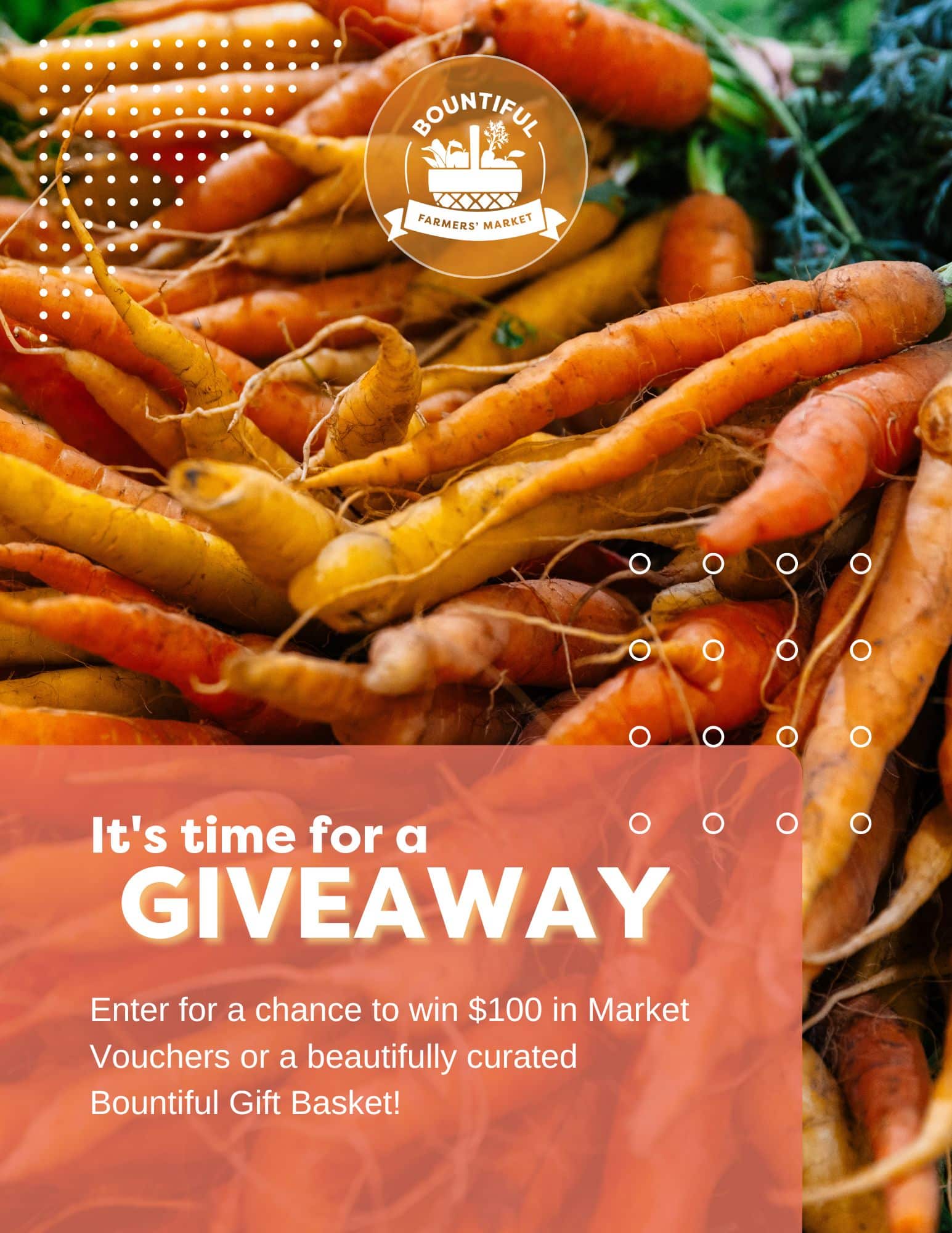 Prize one is $100 in Market Vouchers! These are our version of a giftcard and can be redeemed at any booth at Bounitful Farmers Market!