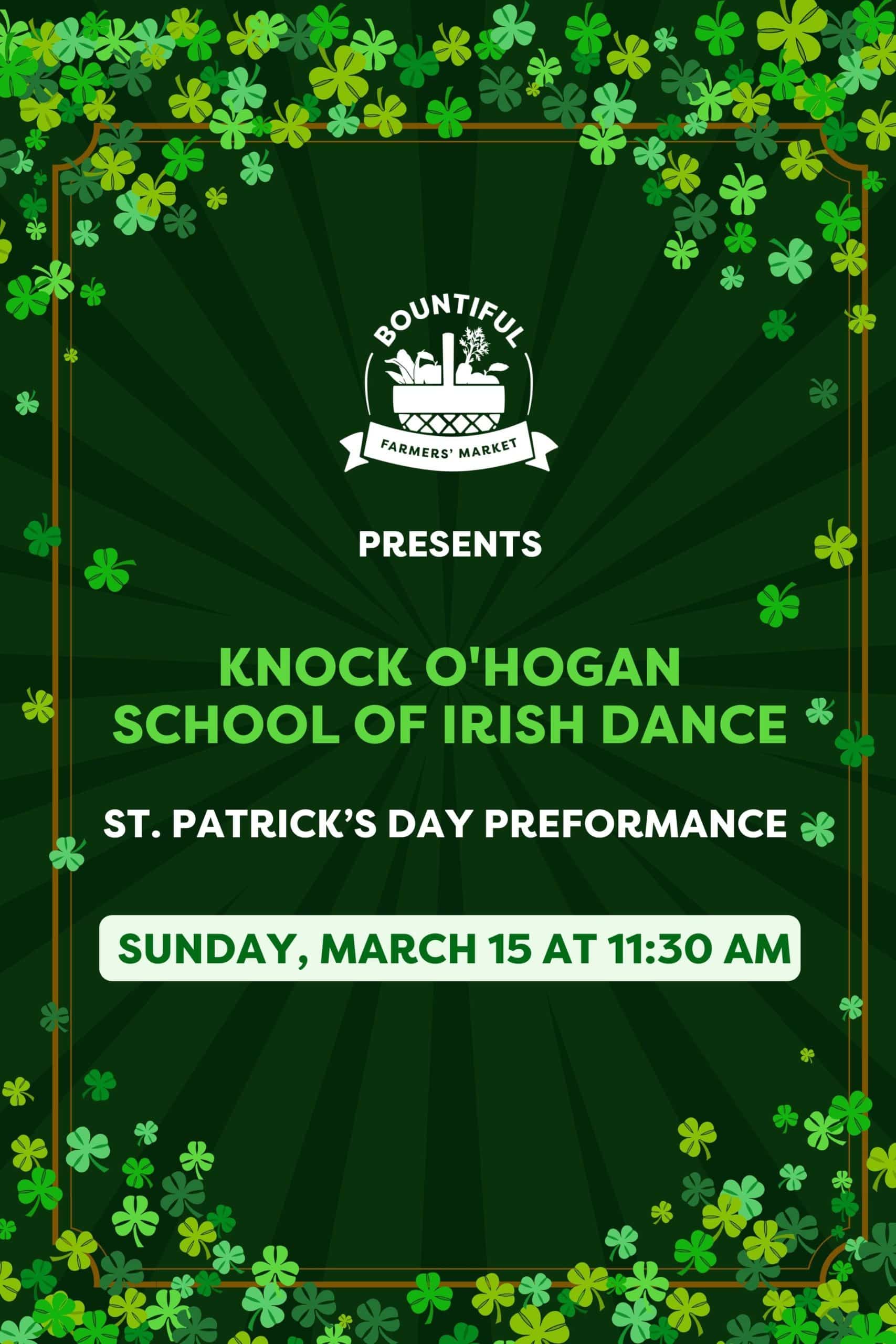Bountiful Farmers' MarketJoin us on March 15th at 11:30 am as we celebrate St. Patrick's Day with a perfomance by Knock O' Hogan School of Irish Dance! ☘️🍀
